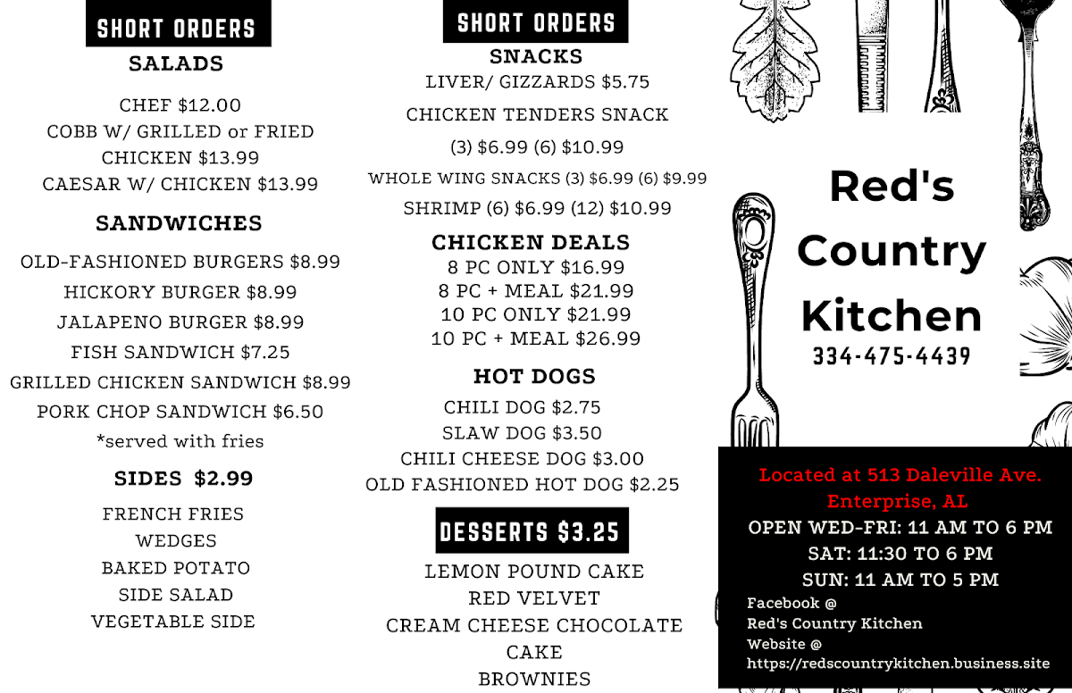Red's Country Kitchen Menu