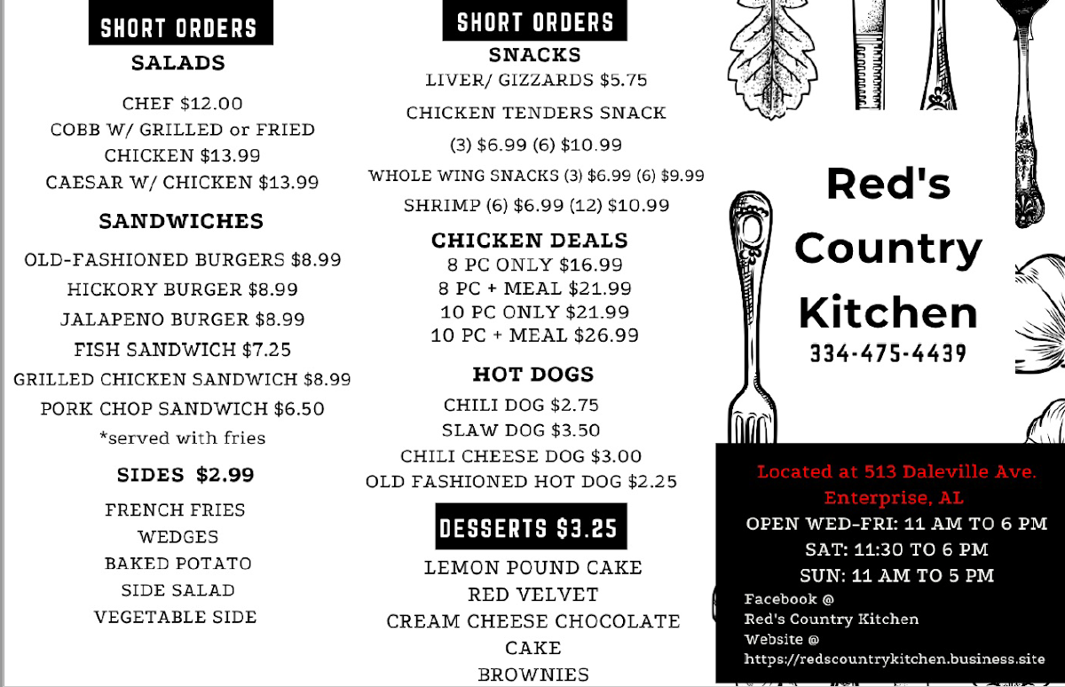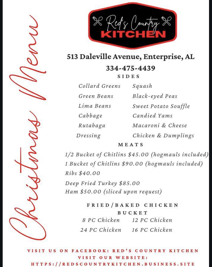Welcome to Red's Country Kitchen, your ultimate destination for authentic country cooking and soul food nestled in Enterprise, Alabama. This charming family restaurant embraces a warm, homey atmosphere, where comfort food reigns supreme.
